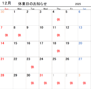 12月の休業日は
